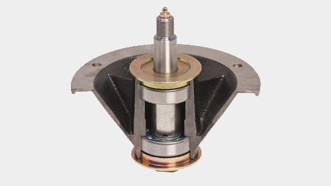 Longer usable life, 1″ shaft with top access grease fitting for greaseable dual ball bearings, six-bolt 8″ flange design adds strength and greater dispersal of energy to deck assembly.